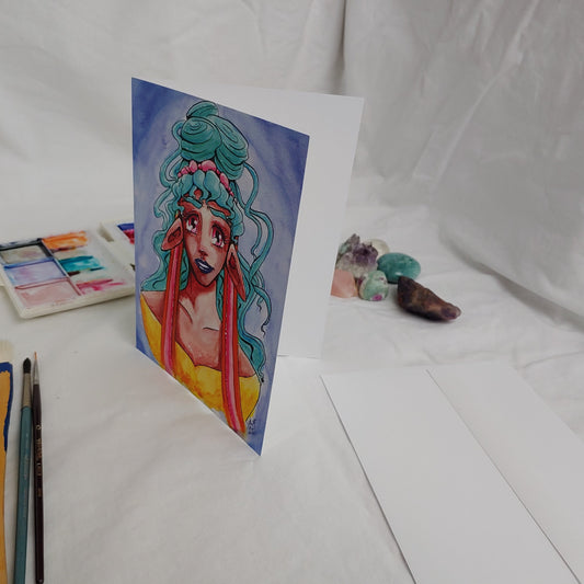A7 CARD - Teal haired Elven Priestess