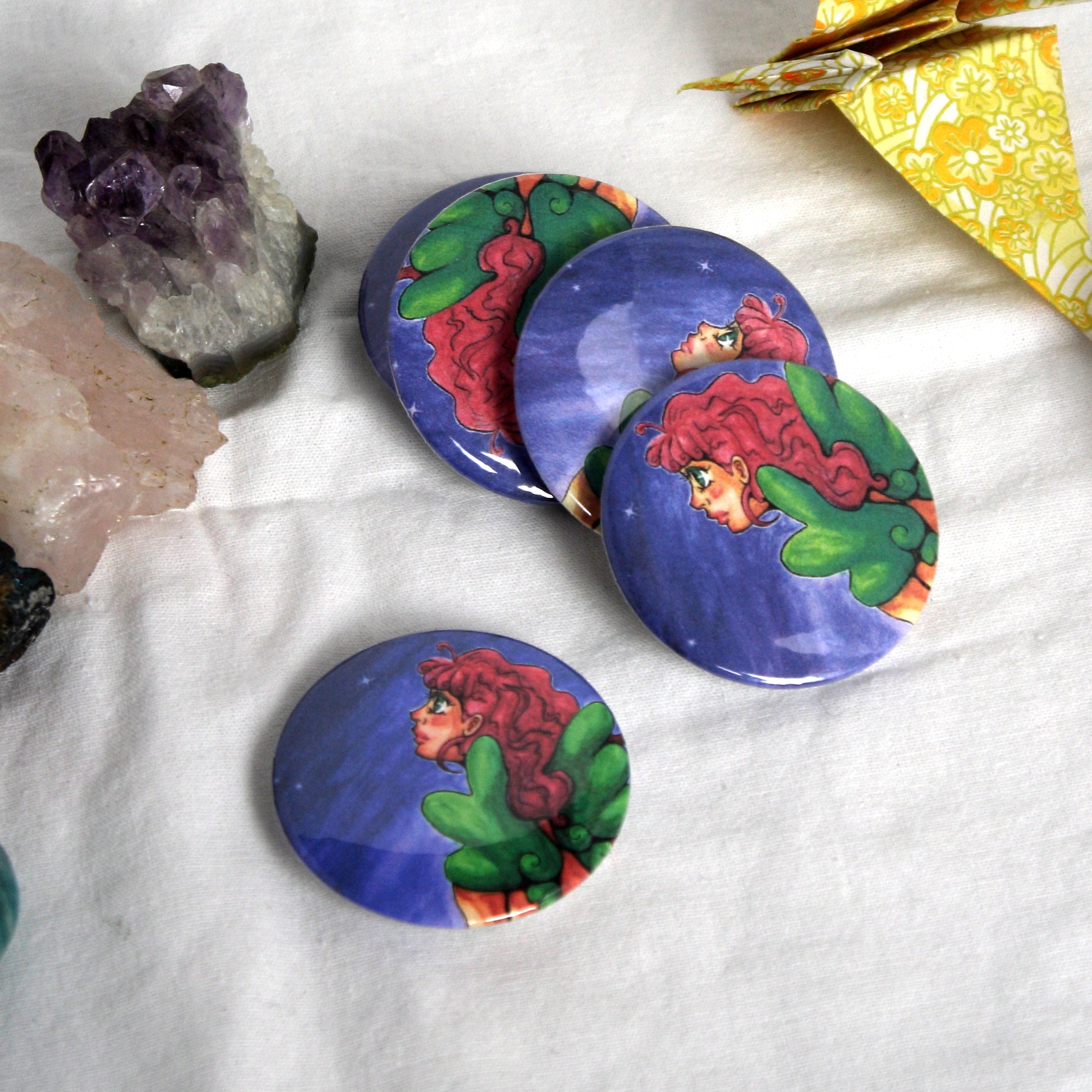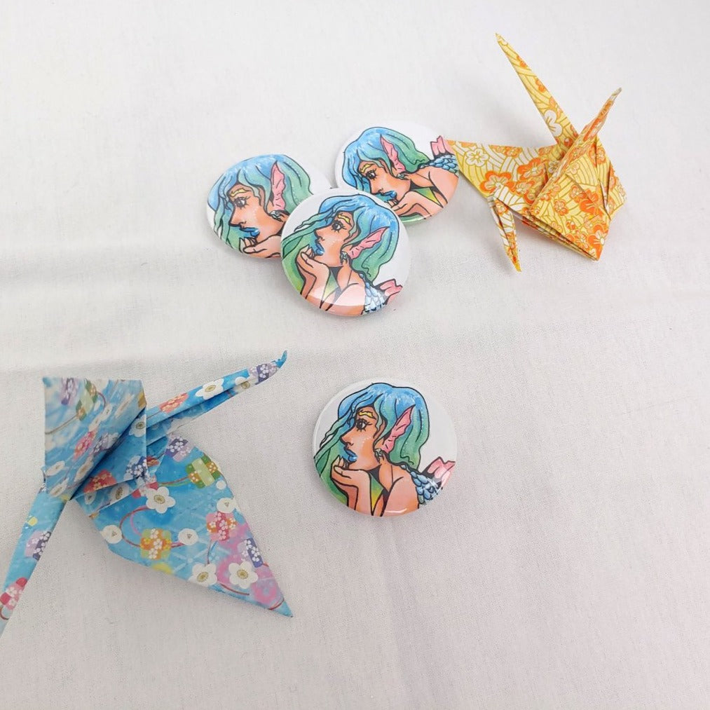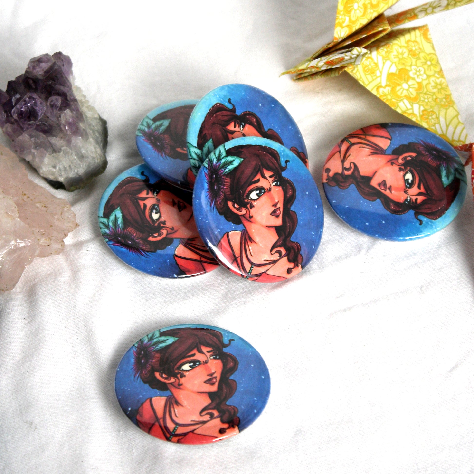 An assortment of my art in button focused on just their lovely faces.